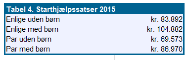 Samtidig genindføres VK-regeringens starthjælp, for at der skal være et tilstrækkeligt incitament til at arbejde. Starthjælpen indebærer, at den offentlige ydelse bliver på 6.991 kr. om måneden eller 44 kr. i timen.