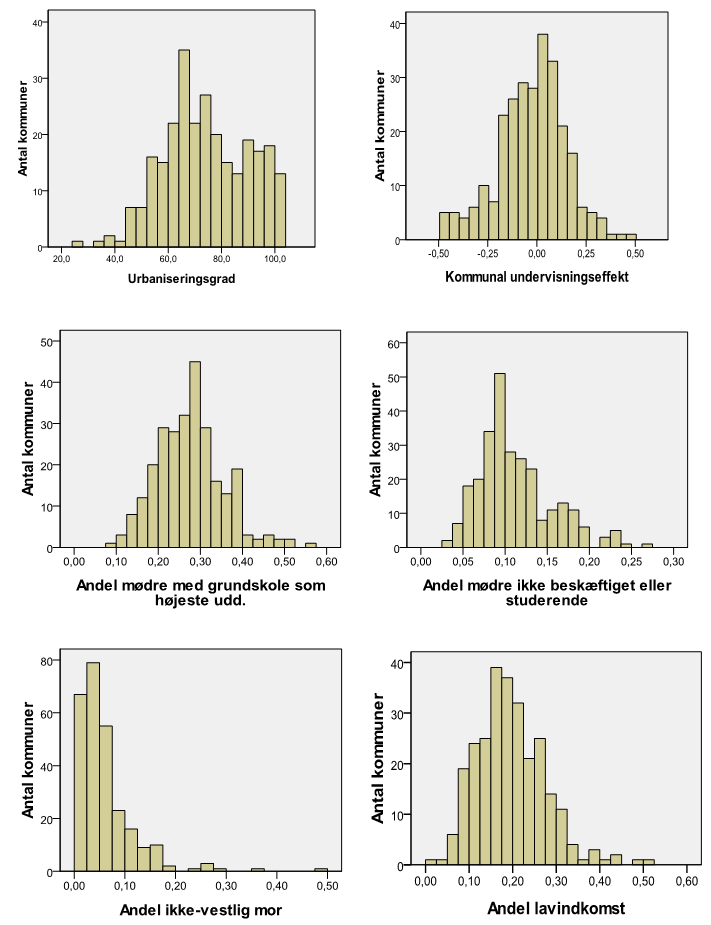 Kommunernes fordeling på de forklarende variabler: