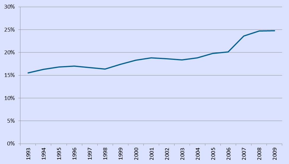 Privat-leverandør indikator for hele landet fra 1993 til 2009
