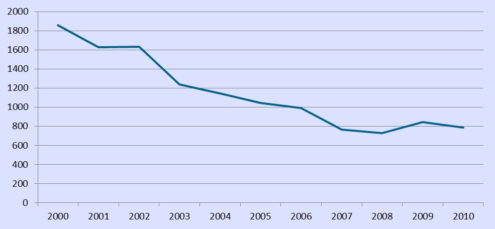 Figur 1: Udviklingen i antal beretninger fra Rigsrevisionen. 2000 – 2010