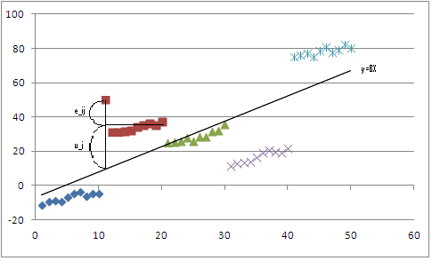 yij = βXij + uj + eij