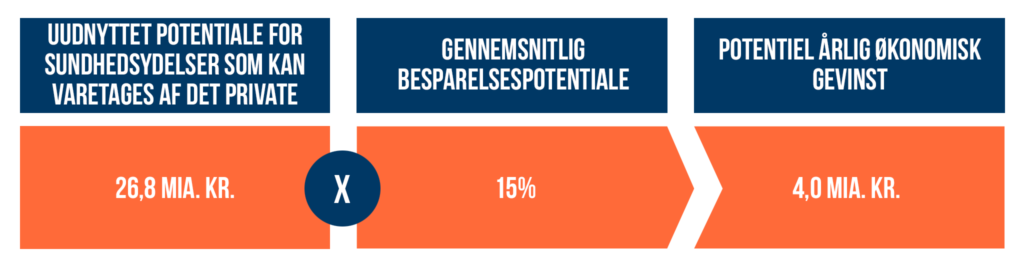 Struensee & co.s analyse viser, at det i dag kun er ca. 25 pct. af de samlede konkurrenceudsættelsesegnede offentlige opgaver, som faktisk er konkurrenceudsat. På baggrund af analyser af de seneste års erfaringer med konkurrenceudsættelse, har Struensee & co. beregnet det samledes bruttopotentiale for øget konkurrenceudsættelse af egnede opgaver i kommuner og regioner til at ligge i omegnen af i alt 240 mia. kr.