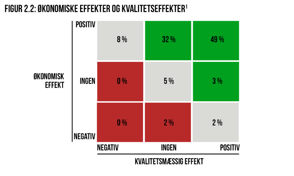 Den manglende kommunale konkurrenceudsættelse er imidlertid ikke alene et problem i forhold til offentlige besparelser og effektivisering. Vi kan således konstatere, at de samfundsøkonomiske konsekvenser af manglende måltal og incitamenter for kommunerne til konkurrenceudsættelse er større end hidtil antaget, og at der ligger store og hidtil ubelyste eksport- og innovationspotentialer i en øget konkurrenceudsættelse.