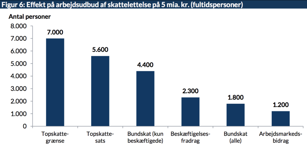 Der er imidlertid et samlet samfundsøkonomisk tab ved mindre arbejdsudbud og mere fritid, når det skyldes forvridende skatter, overførselsindkomster og arbejdsmarkedsreguleringer mv. Derfor vil f.eks. en skattereform med lavere beskatning af arbejdsindkomst indebærer såvel højere vækst som en samlet samfundsøkonomisk gevinst.