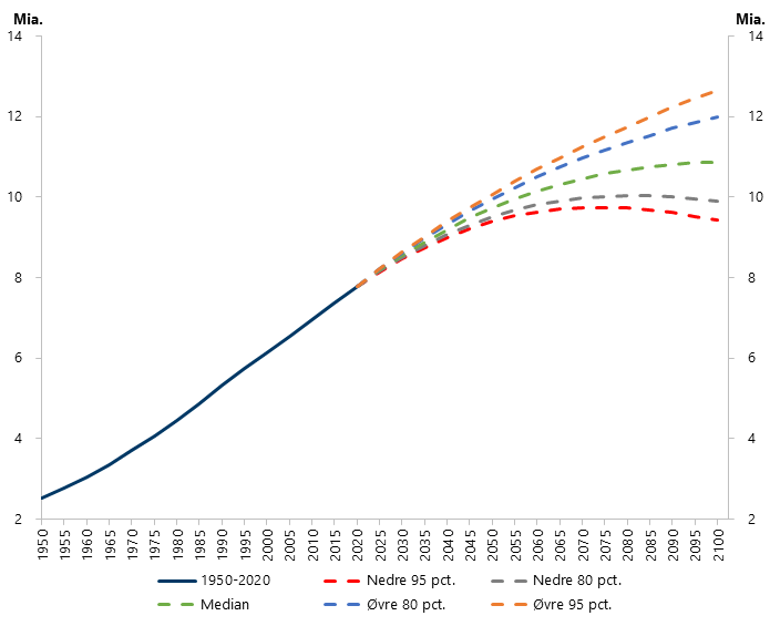 Figur 1: Det globale folketal, 1950-2100