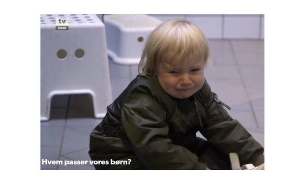 Diskussionen om kvaliteten af dagtilbuddene er primært opstået som følge af DR’s dokumentar, hvor man filmer i to institutioner og beder en psykolog, Rikke Yde Tordrup, om at kommentere. Endvidere har man interviewet en række medarbejdere, der fortæller om deres hverdag. Og endelig er der masser af billeder som dette: