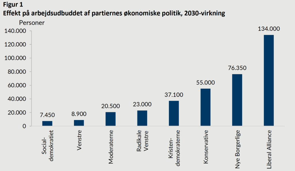 Liberal Alliance er den helt klare vinder i opgørelsen med en stigning i arbejdsudbuddet på 134.000.