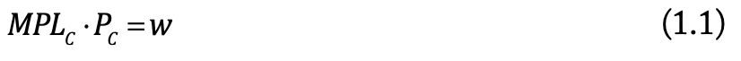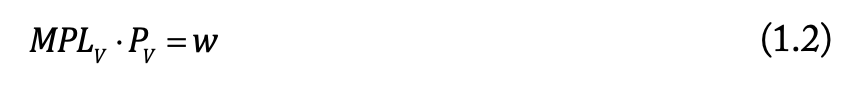 Da arbejdskraften aflønnes efter værdien af dens marginalprodukt, må lønnen i klædeindustrien være lig med arbejdskraftens marginalproduktivitet ganget med prisen på klæde. Det kan skrives som: