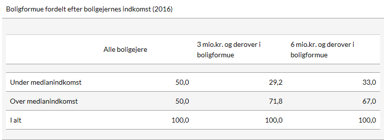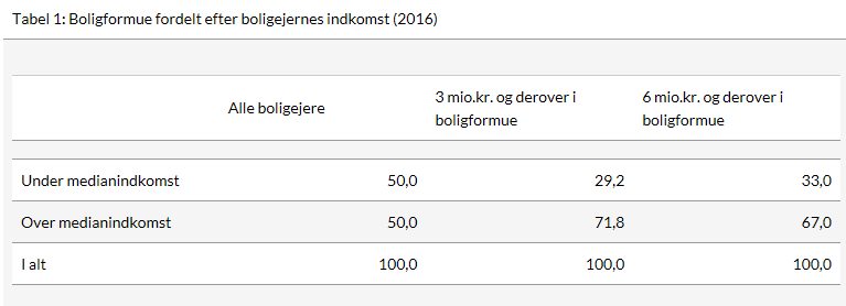 Boligformue fordelt efter boligejernes indkomst (2016)