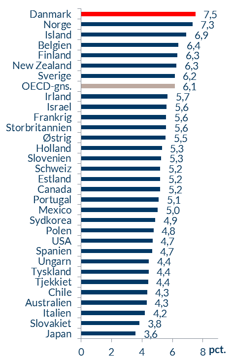 Danmark har næstflest offentligt ansatte pr. indbygger blandt OECD-lande.