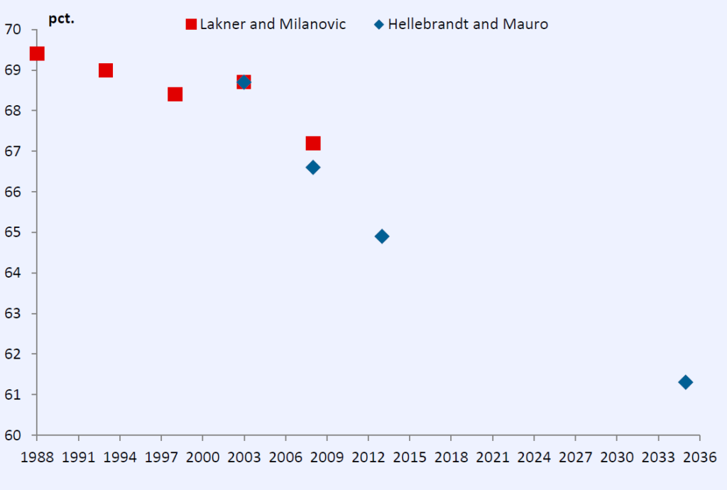 Kilde: Hellebrandt og Mauro: The Future of Worldwide Income Distribution, LIS Working Paper Series No. 635, april 2015