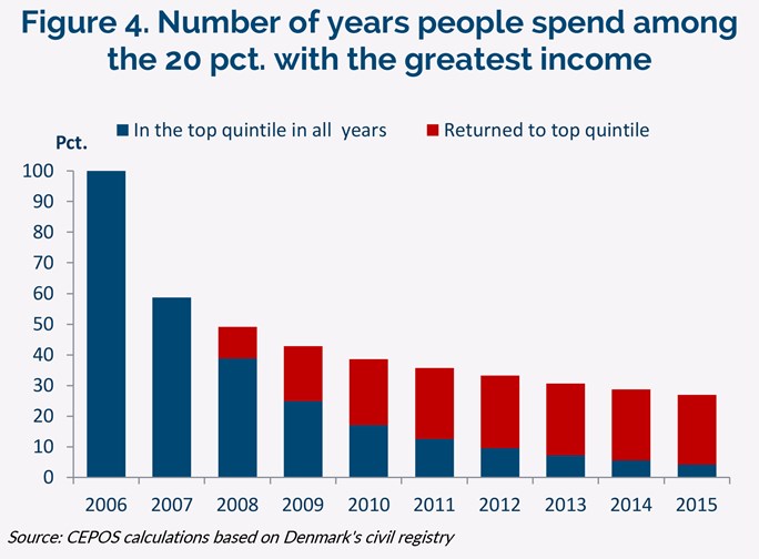 Figure 4 shows how quickly people leave the highest income quintile; that is, the 20 pct. with the greatest disposable income.