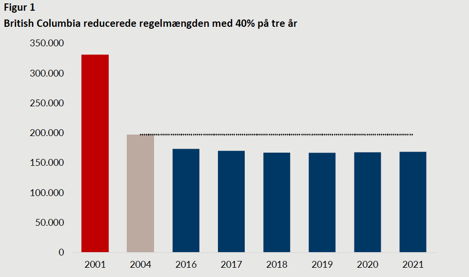 ”Erfaringerne fra British Columbia er ’plug-and-play’. Det er noget, vi umiddelbart kan gøre i Danmark, hvis politikerne reelt vil. Det er ligesom med de offentlige finanser. Et budget har kun effekt, hvis politikerne reelt har tænkt sig at overholde det. Men de internationale erfaringer med regelstop viser, at sandsynligheden for succes stiger, hvis regeringen løbende offentliggør data for antallet af regler og samtidig sætter en deadline for, hvornår konkrete dereguleringsmål skal være opnået,” siger Jonas Herby, specialkonsulent i CEPOS.